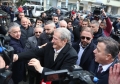Former Prime Minister Sali Berisha speaking to journalists before entering the premises of SPAK. He has been summoned to be questioned in connection with the issue of the former Partizani complex. Berisha is suffering the house arrest security measure, as he did not comply with the obligation to appear for the same case.