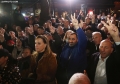 SUPPORTERS BELOW BERISHA'S HOUSE - Supporters of former Prime Minister Sali Berisha watching a statement by the latter through a screen located below Berisha's house on Mustafa Matohiti street in Tirana. He has been summoned to be questioned by SPAK prosecutors regarding the case of the former Partizani complex. Berisha is suffering the house arrest security measure, as he did not comply with the obligation to appear for the same issue. After being questioned, Berisha attacked Prime Minister Edi Rama and SPAK prosecutors.