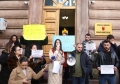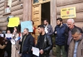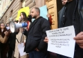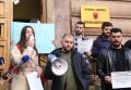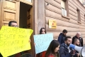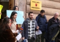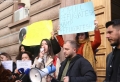 PROTESTS AGAINST THE REFUGEE CAMP - Young people from Lezha protesting in front of the constitutional court against the establishment of the refugee camp in Shengjin. They have demanded the annulment of the agreement between Italy and Albania for the reception of refugees seeking asylum in Italy, in Albania.