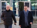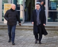 The chairman of the Republican party, Fatmir Mediu and his lawyer Ardian Visha coming out of a court session of the Special Court for Corruption and Organized Crime, GJJKO on the file of the Gerdec tragedy. During the session, former officials of the Ministry of Defense and the Army on the determination the place of dismantling and the type of ammunition, testified.
