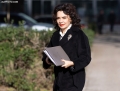 Minister of State for relations with parliament, Elisa Spiropali entering the parliament building for a parliamentary session. The MPs in the opposition, who support Sali Berisha, have announced that they will continue their action to obstruct the work of the parliament.