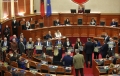 MPs Ervin Salianji and Albana Vokshi in a moment of tension during a parliamentary session in a moment of tension during a parliamentary session. During the session, the opposition deputies continued their action to obstruct the work of the parliament.