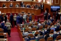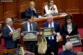MPs Bujar Leskaj, Luan Baci, Dhurata Cupi, Tritan Shehu and Petrit Vasili in a moment of tension during a parliamentary session in a moment of tension during a parliamentary session. During the session, the opposition deputies continued their action to obstruct the work of the parliament.