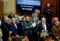 DP MPs holding signs and blocking the pulpit during a parliamentary session in a moment of tension during a parliamentary session. During the session, the opposition deputies continued their action to obstruct the work of the parliament.