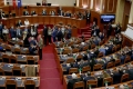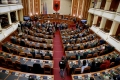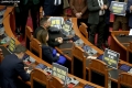 Majority MPs voting during a parliamentary session in a moment of tension during a parliamentary session. During the session, the opposition deputies continued their action to obstruct the work of the parliament.