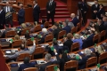 MPs Enkelejd Alibeaj and Arbi Agalliu in a moment of tension during a parliamentary session in a moment of tension during a parliamentary session. During the session, the opposition deputies continued their action to obstruct the work of the parliament.