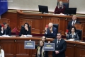 PARLIAMENTARY SESSION - The Prime Minister, Edi Rama, the Minister of State for Relations with the Parliament, Elisa Spiropali and the Deputy Prime Minister and Minister of Infrastructure and Energy, Belinda Balluku, voting in a moment of tension during a parliamentary session. During the session, the opposition deputies continued their action to obstruct the work of the parliament.