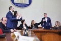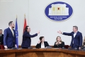 MPs Dashnor Sula, Ervin Salianji and Luan Baci in a moment of tension during a session of the commission for electoral reform. The opposition MPs blocked the session, taking the seats of the commission members, while Metaliaj and Vokshi took the seats of the chairmen Gjiknuri and Alibeaj. This is the second time that opposition MPs block the session.