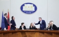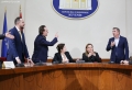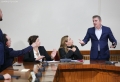 SESSION OF THE COMMISSION FOR ELECTORAL REFORM - MPs Ervin Salianji, Luan Baci, Lindita Metaliaj, Albana Vokshi and Damian Gjiknuri debating in a moment of tension during a session of the commission for electoral reform. The opposition MPs blocked the session, taking the seats of the commission members, while Metaliaj and Vokshi took the seats of the chairmen Gjiknuri and Alibeaj. This is the second time that opposition MPs block the session.