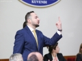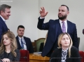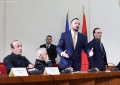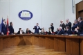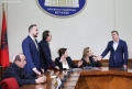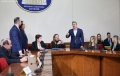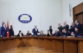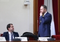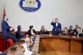 MP Jurgis Cyrbja in a moment of tension during a session of the commission for electoral reform. The opposition MPs blocked the session, taking the seats of the commission members, while Metaliaj and Vokshi took the seats of the chairmen Gjiknuri and Alibeaj. This is the second time that opposition MPs block the session.