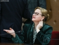 MP Klotilda Bushka in a moment of tension during a session of the commission for electoral reform. The opposition MPs blocked the session, taking the seats of the commission members, while Metaliaj and Vokshi took the seats of the chairmen Gjiknuri and Alibeaj. This is the second time that opposition MPs block the session.