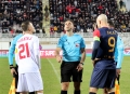 The main referee, Andi Koci, the Captain of Partizan Valentino Murataj and the captain of Vllaznis, Bekim Balaj, before the football match Vllaznia - Partizani, 1-1, valid for the Albanian Super League, played at the Loro Borici stadium in Shkodra.