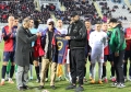 The players of both teams before the football match Vllaznia - Partizani, 1-1, valid for the Albanian Super League, played at the Loro Borici stadium in Shkodra.