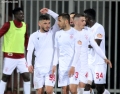 Partizani players celebrate scoring a goal during the football match Vllaznia - Partizani, 1-1, valid for the Albanian Super League, played at the Loro Borici stadium in Shkodra.