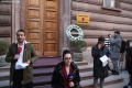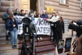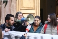 PROTESTS IN FRONT OF THE CONSTITUTIONAL COURT - Young people and citizens holding a banner in front of the constitutional court. This court has considered the agreement between Italy and Albania for the arrival of refugees, while at the end of the session it voted in favor of it, paving the way for ratification in the parliament.