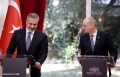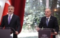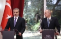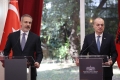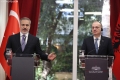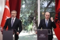 Minister for Europe and Foreign Affairs, Igli Hasani and Turkish Foreign Minister, Hakan Fidan before a press conference after an official reception of the Turkish minister in Tirana. Minister Hasani evaluated the advancement of Turkey-Albania relations, as he emphasized that there is potential between the two countries for a further intensification of economic relations and not only that.