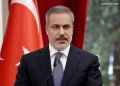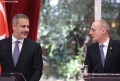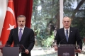 Turkish Foreign Minister, Hakan Fidan during a press conference with the minister Hasani after an official reception of the Turkish minister in Tirana. Minister Hasani evaluated the advancement of Turkey-Albania relations, as he emphasized that there is potential between the two countries for a further intensification of economic relations and not only that.