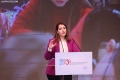 The Minister of Education and Sports, Ogerta Manastirliu speaking during a government ceremony, where the National Program for the Professional Development of Teachers 2024-2025 was launched. This program aims to empower teachers through training and innovative teaching methods.