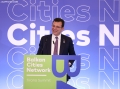 President, Bajram Begaj speaking during the third summit of the B40 Balkan Cities Network, in Tirana. At the summit, where mayors and delegations from 54 cities in the Balkans took part, the municipality of Tirana took the lead of the network.