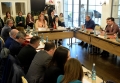 AMA MEETING FOR AUDIENCE MEASUREMENT - The Chairperson of the Audiovisual Media Authority, Armela Krasniqi, the General Secretary of AMA, Romelda Rrapollari during the meeting of AMA takes Albanian media leaders on the process of audience measurement. After the meeting, it was decided to establish the Joint Industry Committee for audience measurement.