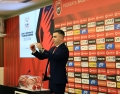 The Director of the Department of Competitions in the AFF, Marjus Sulejmani during the draw for the quarter-final phase of the Albanian Cup for the 2023-2024 season. The draw took place in the premises of the Air Albania stadium, where representatives of the media and Albanian clubs were also present.