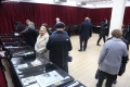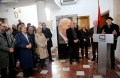 Writers and journalists during a ceremony for the writer Fatos Kongoli's birthday, held at the premises of the National Library in Tirana. During the ceremony, an exhibition of his works was opened.