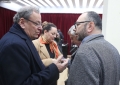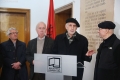 Erion Kristo, Besnik Mustafaj and Valentina Leskaj during a ceremony for the writer Fatos Kongoli's birthday, held at the premises of the National Library in Tirana. During the ceremony, an exhibition of his works was opened.