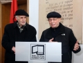 FATOS KONGOLI'S BIRTHDAY CEREMONY - Fatos Kongoli and Besnik Mustafaj posing during a ceremony for the writer Fatos Kongoli's birthday, held at the premises of the National Library in Tirana. During the ceremony, an exhibition of his works was opened.