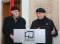 Fatos Kongoli and Edmond Tupja speaking during a ceremony for the writer Fatos Kongoli's birthday, held at the premises of the National Library in Tirana. During the ceremony, an exhibition of his works was opened.
