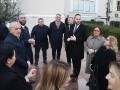 MPs Ervin Salianji, Agron Gjekmarkaj, Dhurata Cupi and Bardh Spahia speaking outside the premises of the parliament, which is surrounded by members of the Guard of the Republic. The MPs were expelled due to the tensions created during the sessions.