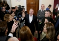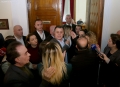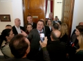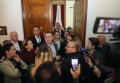 The general secretary of the socialist party, Blendi Klosi, leaving the hall where the electoral reform commission would be held. The opposition represented by Sali Berisha wants to have the co-chairman of this commission, which is currently held by Enkelejd Alibeaj, representative of Lulzim Basha's group. The opposition MPs tried to stop the majority MPs from entering the hall.