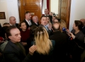 MPs Petrit Vasili, Fatmir Mediu, Edi Paloka and Gazment Bardhi in the hall of the Electoral Reform Commission. The opposition represented by Sali Berisha wants to have the co-chairman of this commission, which is currently held by Enkelejd Alibeaj, representative of Lulzim Basha's group. The opposition MPs tried to stop the majority MPs from entering the hall.