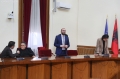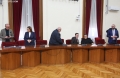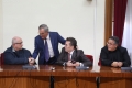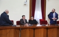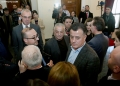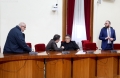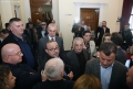 MPs Petrit Vasili, Fatmir Mediu, Edi Paloka and Arjan Madhi in the hall of the Electoral Reform Commission. The opposition represented by Sali Berisha wants to have the co-chairman of this commission, which is currently held by Enkelejd Alibeaj, representative of Lulzim Basha's group. The opposition MPs tried to stop the majority MPs from entering the hall.