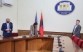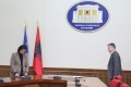 MPs Flamur Noka and Greta Bardeli in the hall of the Electoral Reform Commission. The opposition represented by Sali Berisha wants to have the co-chairman of this commission, which is currently held by Enkelejd Alibeaj, representative of Lulzim Bashe's group. The opposition MPs tried to stop the majority MPs from entering the hall.