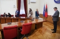 MPs Flamur Noka, Ina Zhupa, Greta Bardeli and Gazment Bardhi in the hall of the Electoral Reform Commission. The opposition represented by Sali Berisha wants to have the co-chairman of this commission, which is currently held by Enkelejd Alibeaj, representative of Lulzim Basha's group. The opposition MPs tried to stop the majority MPs from entering the hall.