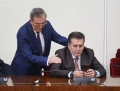MP Fatmir Mediu and Arjan Madhi in the hall of the Electoral Reform Commission. The opposition represented by Sali Berisha wants to have the co-chairman of this commission, which is currently held by Enkelejd Alibeaj, representative of Lulzim Basha's group. The opposition MPs tried to stop the majority MPs from entering the hall.