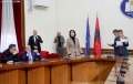 MPs Flamur Noka, Ina Zhupa, Greta Bardeli in the hall of the Electoral Reform Commission. The opposition represented by Sali Berisha wants to have the co-chairman of this commission, which is currently held by Enkelejd Alibeaj, representative of Lulzim Basha's group. The opposition MPs tried to stop the majority MPs from entering the hall.