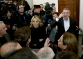MPs Oerd Bylykbashi, Albana Vokshi and Luan Baci during a moment of tension where they clashed with MPs of the majority outside the hall where the Electoral Reform Commission was expected to be held. The opposition represented by Sali Berisha wants to have the co-chairman of this commission, which is currently held by Enkelejd Alibeaj, representative of Lulzim Bashe's group. The opposition MPs tried to stop the majority MPs from entering the hall.