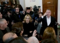 ELECTORAL REFORM COMMISSION - MPs Damian Gjiknuri and Blerina Gjylameti debating during a moment of tension outside the room where the Electoral Reform Commission was expected to be held. The opposition represented by Sali Berisha wants to have the co-chairman of this commission, which is currently held by Enkelejd Alibeaj, representative of Lulzim Basha's group. The opposition MPs tried to stop the majority MPs from entering the hall.