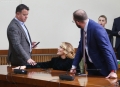 MPs Edi Paloka, Ina Zhupa, Gazment Bardhi in the hall of the Electoral Reform Commission. The opposition represented by Sali Berisha wants to have the co-chairman of this commission, which is currently held by Enkelejd Alibeaj, representative of Lulzim Basha's group. The opposition MPs tried to stop the majority MPs from entering the hall.