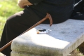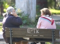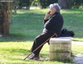 An elderly woman talking on the phoneon a sunny day in Park Rinia, in the center of the capital. Sunny weather and high temperatures have made residents leave their homes and spend more time in nature.
