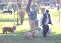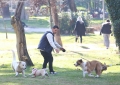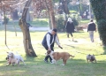 Residents of Tirana walking their dogs on a sunny day in Rinia Park, in the center of the capital. Sunny weather and high temperatures have made residents leave their homes and spend more time in nature.