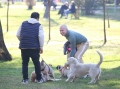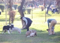 Residents of Tirana playing with their dogs on a sunny day in Rinia Park, in the center of the capital. Sunny weather and high temperatures have made residents leave their homes and spend more time in nature.