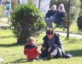 An elderly woman playing with a child on a sunny day in Rinia Park, in the center of the capital. Sunny weather and high temperatures have made residents leave their homes and spend more time in nature.