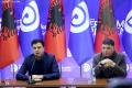 The chairman of the democratic party, Lulzim Basha and MP Kreshnik Collaku speaking during a press conference from the new offices of the democratic party. Basha has ironized the actions of the MPs who support former Prime Minister Sali Berisha in the parliament.