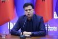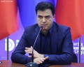 The chairman of the democratic party, Lulzim Basha speaking during a press conference from the new offices of the democratic party. Basha has ironized the actions of the MPs who support former Prime Minister Sali Berisha in the parliament.