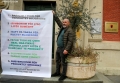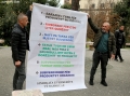 Dairy farmers holding a placard in front of the Ministry of Agriculture, in one of their protests for equalization of VAT for agricultural products, reimbursement for every liter of milk, tax-free oil for agricultural tools and subsidy for seeds and seedlings and Subsidy for products organic.