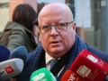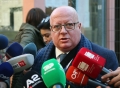 Former prime minister Berisha's lawyer, Genc Gjokutaj, speaking to journalists after leaving the premises of the special court for the trial of former prime minister Sali Berisha. The court rejected Berisha's request to participate in the parliamentary sessions.