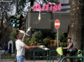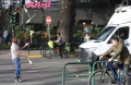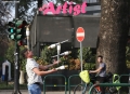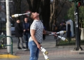 Juggler performing on one of the streets of Tirana, during a moment when the traffic has stopped.