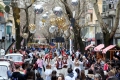 Traditional dancers and children playing on the Myslym Shyri street during a ceremony organized on the occasion of the 104th anniversary of the establishment of Tirana as the capital of the country. In 1920, the Lushnja Congress designated Tirana as the capital, initially temporarily and then officially after 5 years.